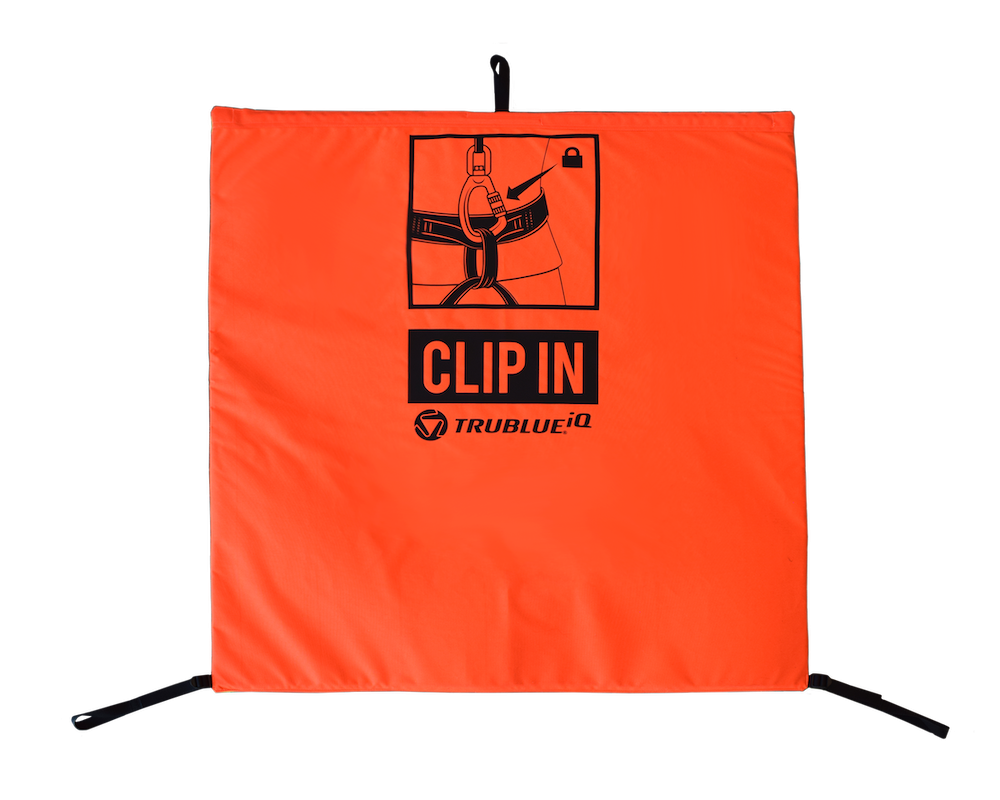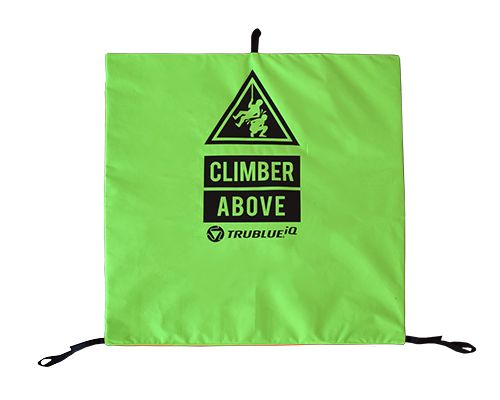 Clear Visual Cues and Durable Construction: The gate features bold "CLIP IN" lettering and graphical instructions, providing clear reminders of correct carabiner attachment. When flat, it displays "CLIMBER ABOVE" with a warning image, alerting others to ongoing climbs. Constructed with a premium semi-rigid foam core and reinforced with two carbon fiber rods, the gate maintains its shape whether upright or flat. The heavy-duty nylon construction and universal adjustable lower webbing straps ensure durability and adaptability.